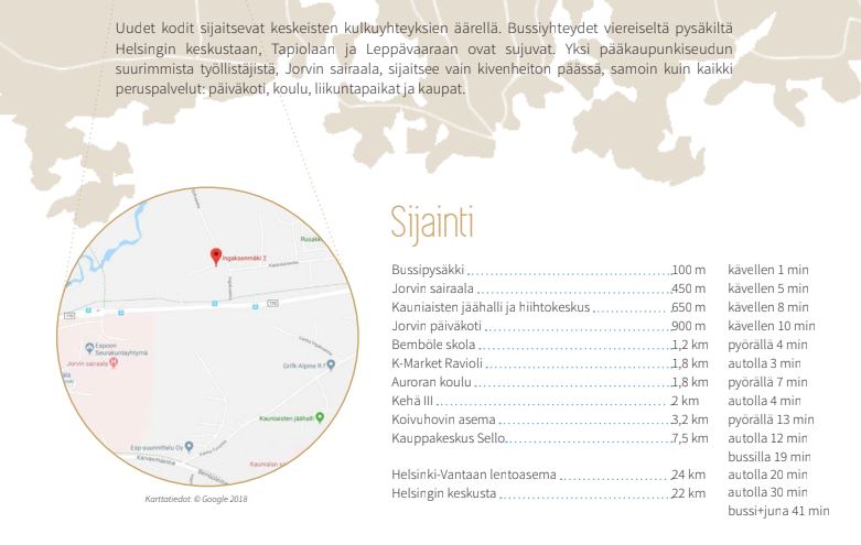 Bussipysäkit ovat aivan talon vieressä ja Leppävaaran Selloon on 15 min matka. Pyörämatkan päässä (noin. 10min) Oittaan ja Pirttimäen ulkoilualueista.